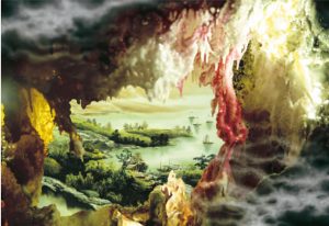 H.H.第三世多杰羌佛西畫藝術作品-A Beautiful World Discovered From a Cave 別有洞天
